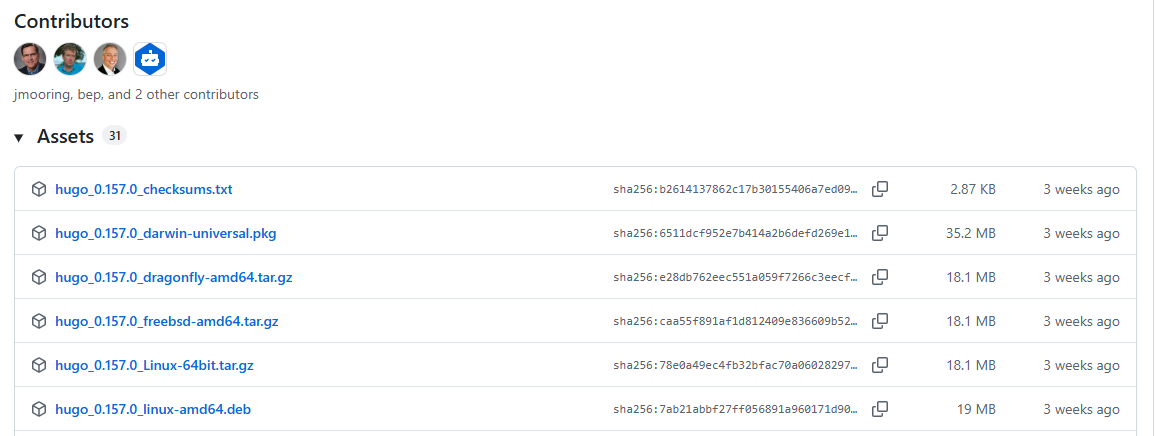 - 静态站点生成器 Hugo v0.157.0 (extended)下载地址